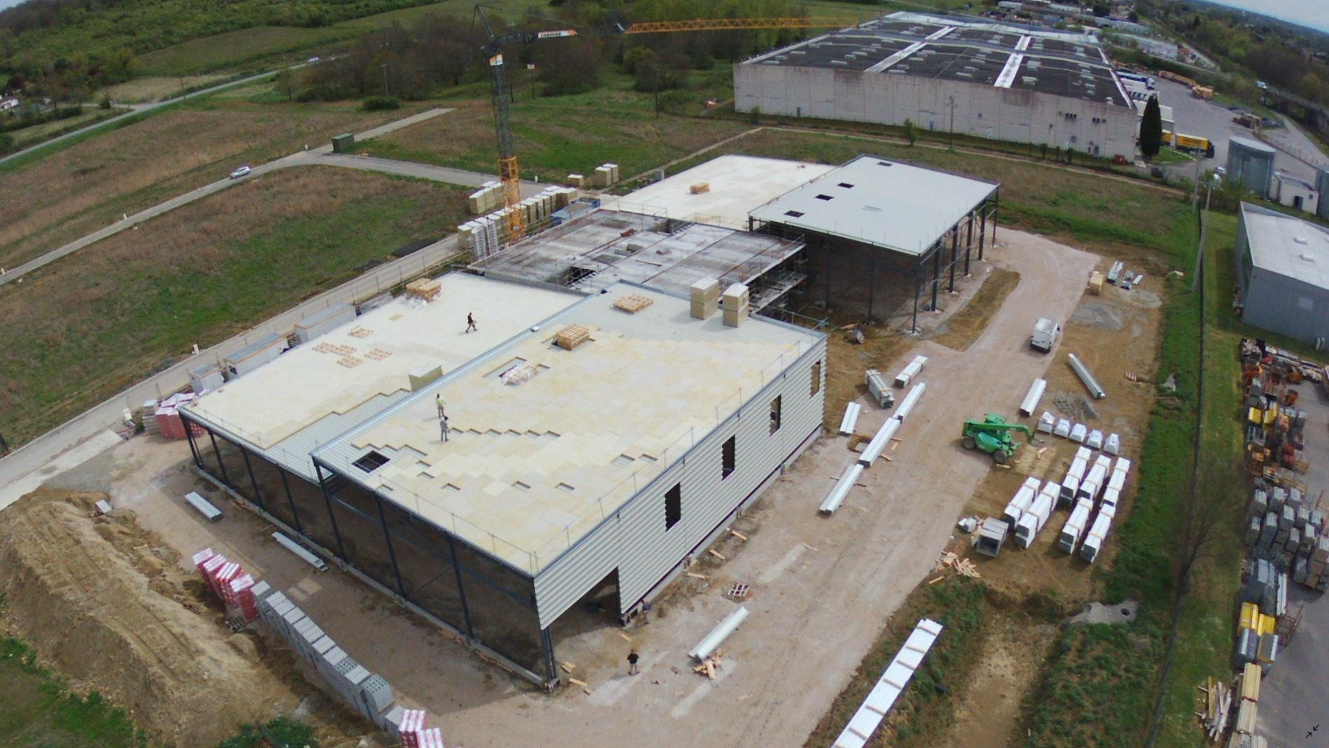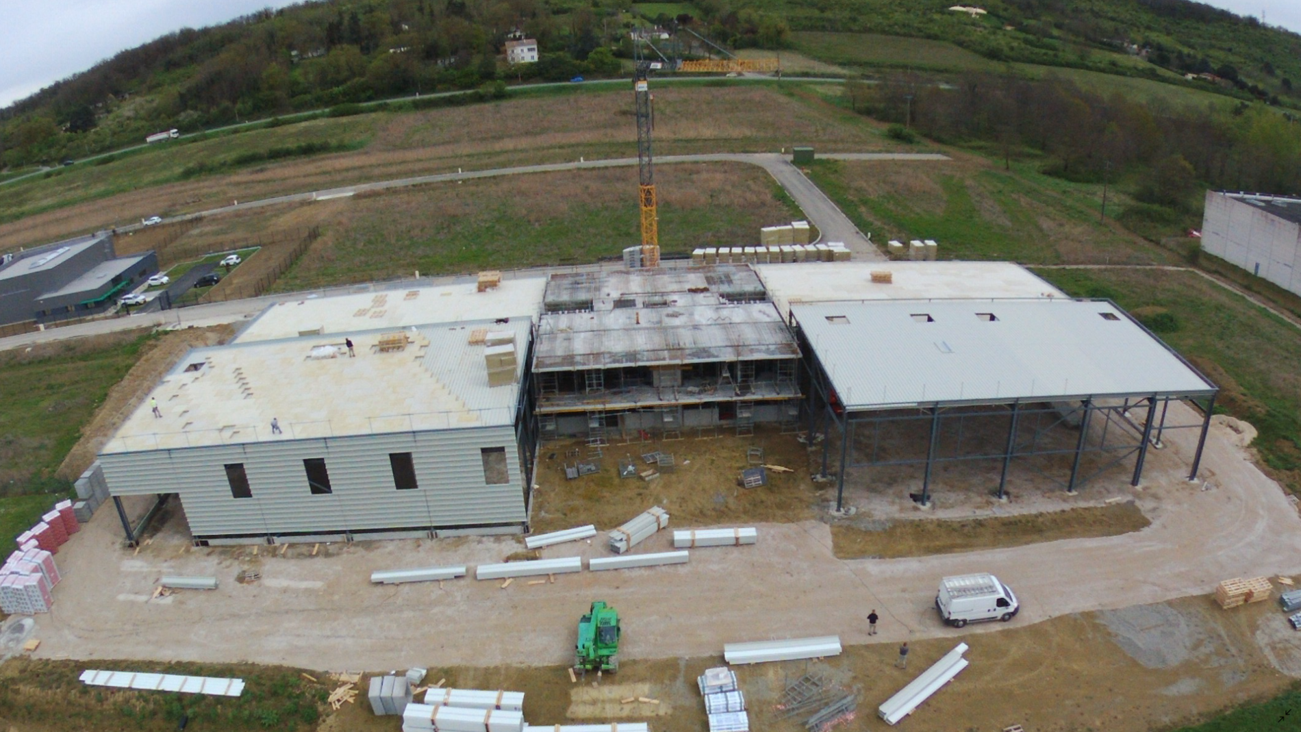 -pour les ateliers, le bardage a bien avancé et l'isolation de la toiture a débuté.